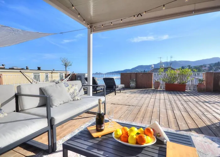 The spacious Stupefacente Vista Sul Rapall Mare includes a terrace and is located 9 minutes on foot from Castle-on-the-Sea. Wi-Fi and free private parking are provided for guests' utmost comfort.